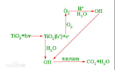 光(guāng)觸媒在(zài)光(guāng)的(de)照射下,會產(chǎn)生類似光合作用的光催化反應,將空氣中的水或氧氣催化成氧化能力極強的羥基自由基(·OH)和超氧(yǎng)陰離子自由基(O2·)、活性(xìng)氧(HO2·,H2O2)等具有極強氧化能力的光生活性基團,這些光生(shēng)活性基團的能量相當於3600K的高溫,具(jù)有很強(qiáng)的氧化性(xìng),這(zhè)些強氧化性基團可強效分解各種具有不穩(wěn)定化學鍵的有機化(huà)合物和部分無機物,並可破壞細菌的細胞膜和凝固病(bìng)毒的蛋白(bái)質載體(tǐ)。