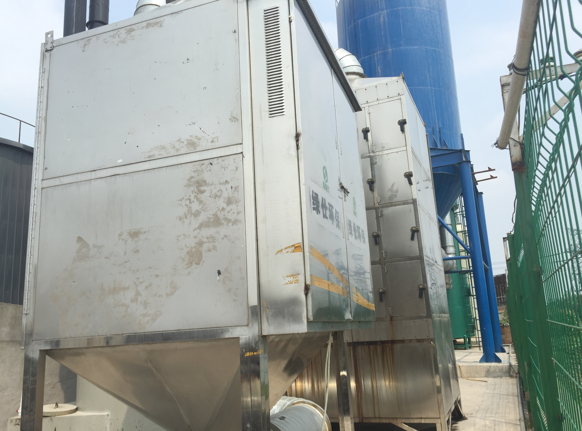 處理工藝:廢(fèi)氣→水洗塔→電捕焦油器→靜電吸附→光電裂解→水洗(xǐ)塔→風機→煙囪排(pái)放